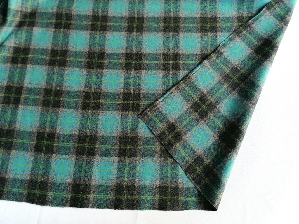 Blauwgroen, zwart geruite wollen stof van MOON