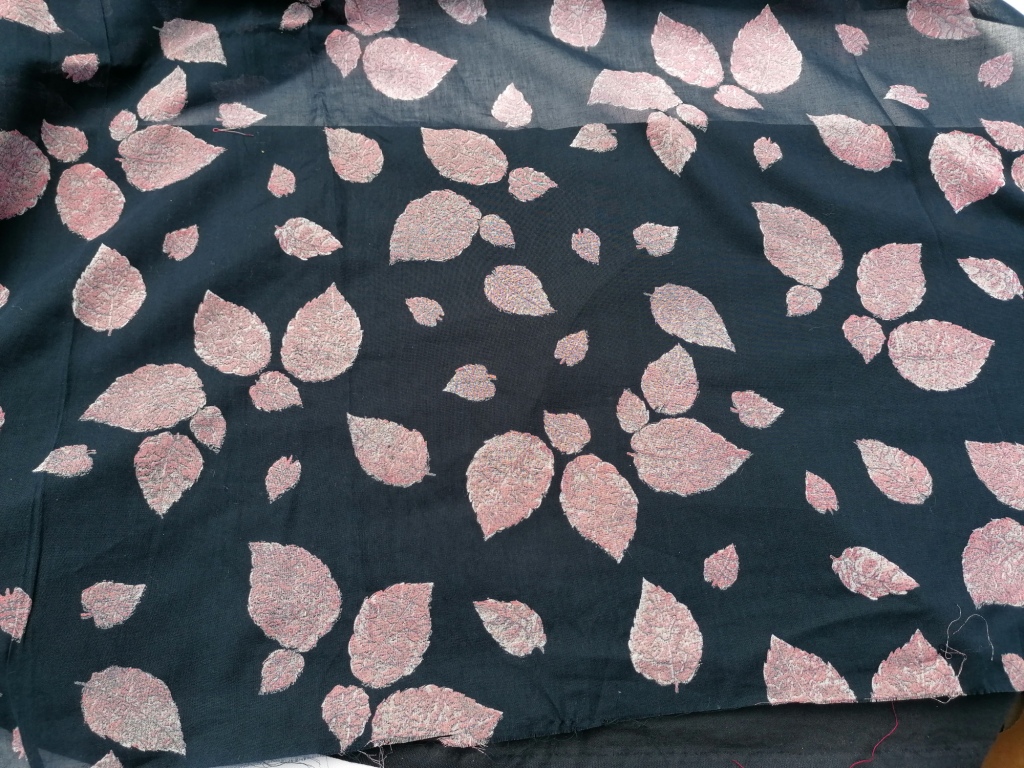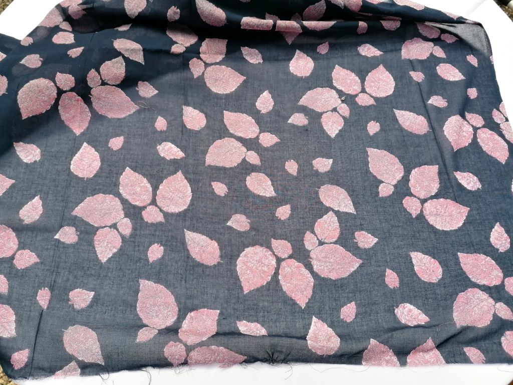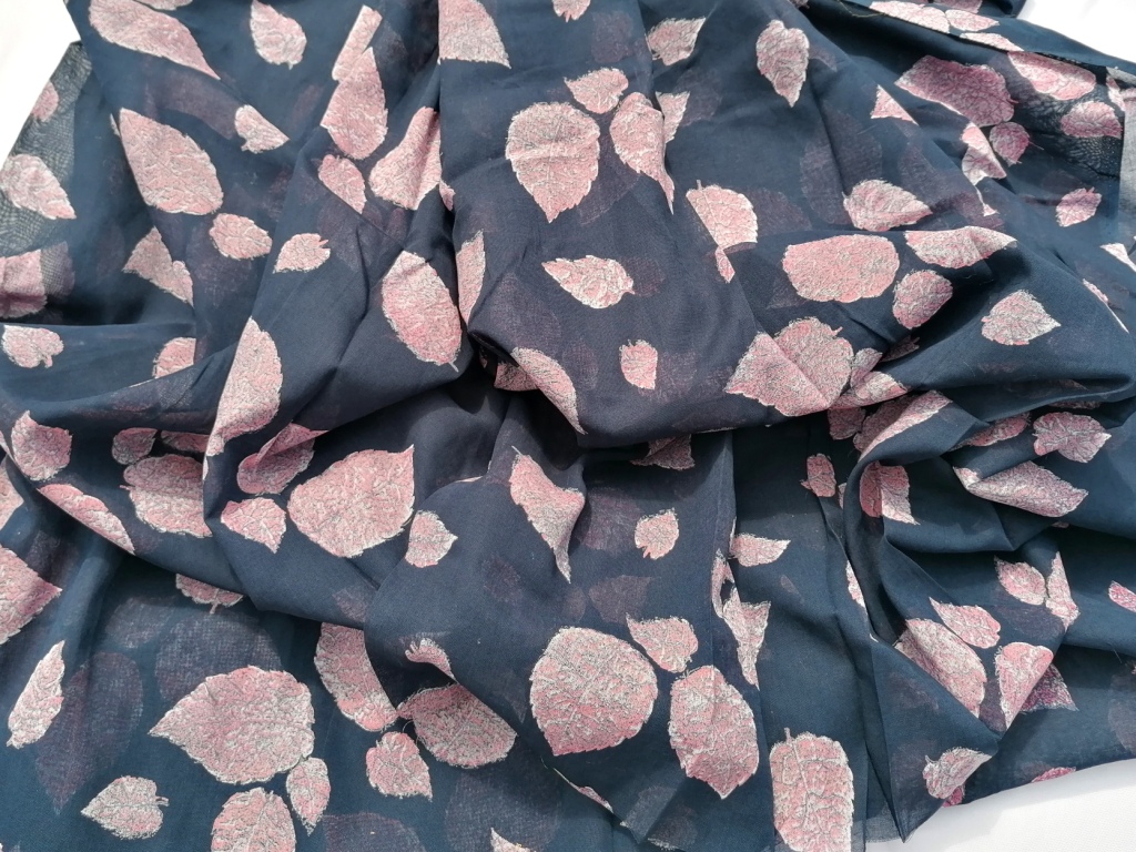blauwe batist roze bladeren 3,1m
