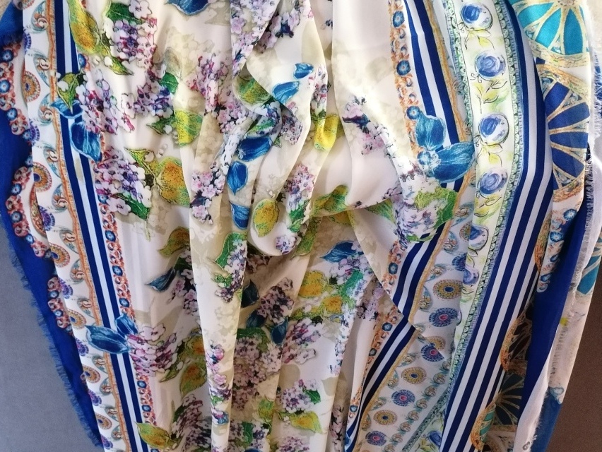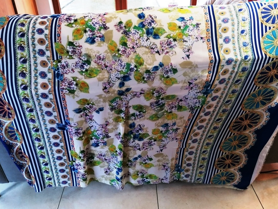 in het midden bloem motief met langs beide randen bloemen en cirkels
