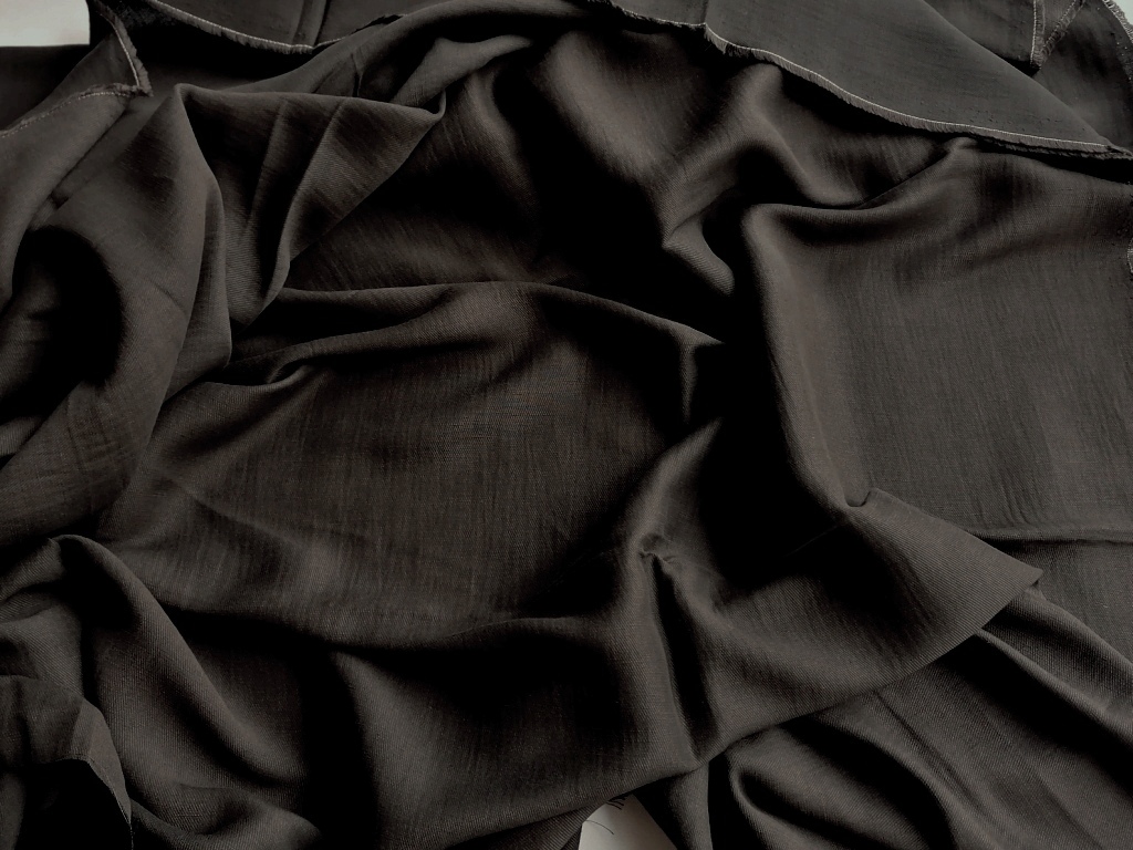 Deze donkerbruine fijne keperstof heeft een warme, heel donker kastanjebruine tint. De stof is zeer soepel en zacht, en ideaal voor een kleed of broek, maar ook geschikt voor een blazer of rok. Het gaat om een echte oude stof van zeer goede kwaliteit. De kleur is moeilijk exact vast te leggen op foto, waardoor de tint licht kan afwijken van de werkelijkheid.