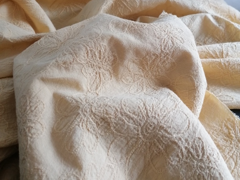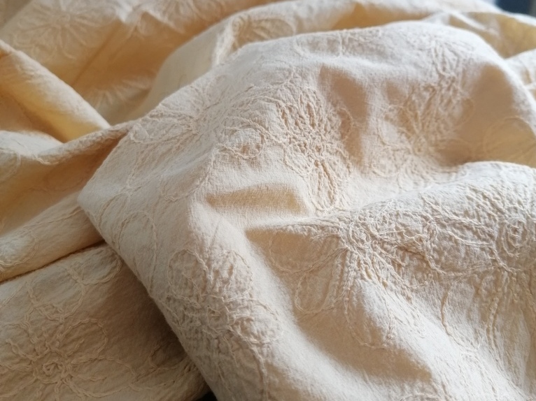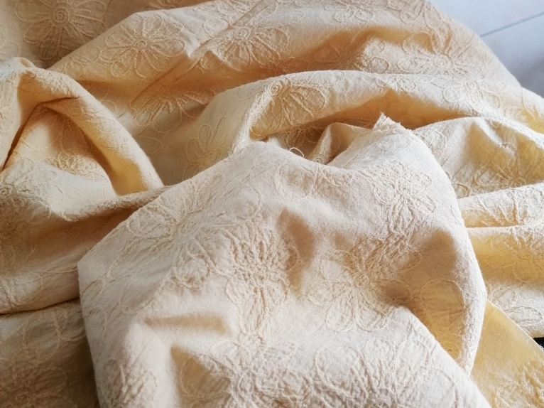 geborduurde mosterdgele kreukelkatoen