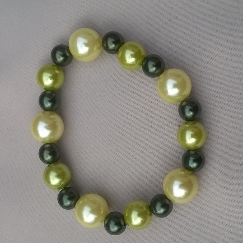armband met mengeling van geel-groene kunststof parels,