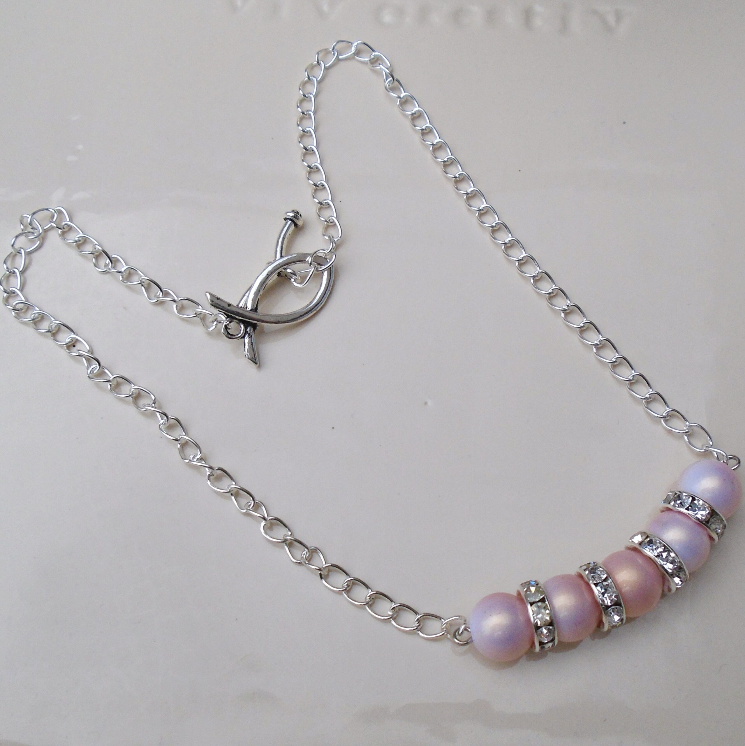halsketting met zacht roze kunststof kralen en rondellen met strass