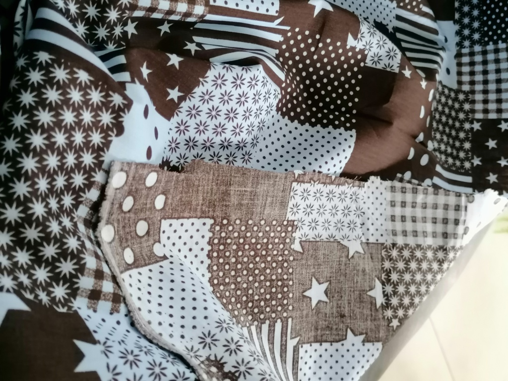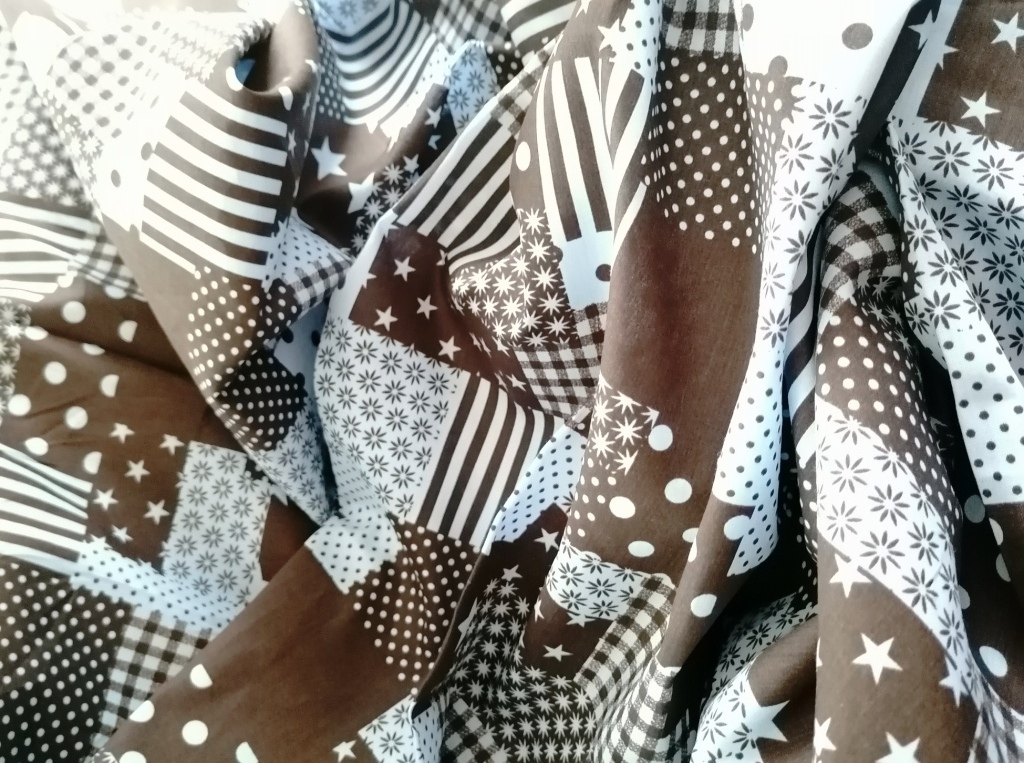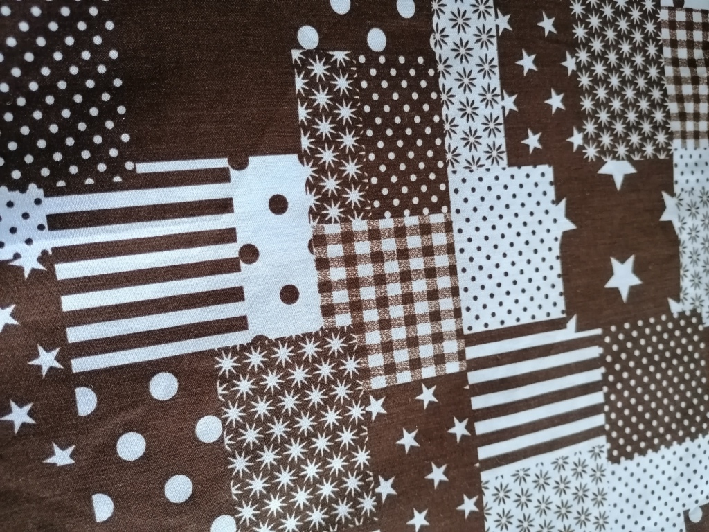 Katoen met patchwork motief in blauw en zwart