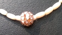 ketting van beige cateye kralen met een fantasie kraal