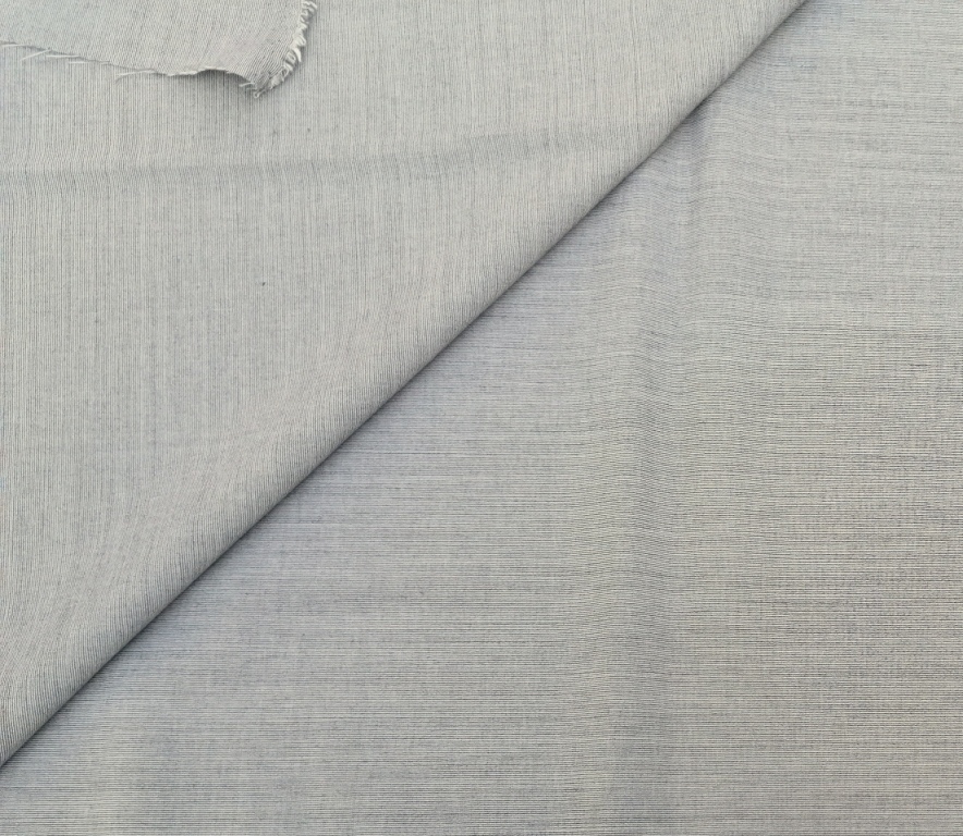 Deze lichtgrijze wolmix streepstof is een vintage stof van zeer goede kwaliteit, geweven met een heel fijn, subtiel streepmotiefje. De stof is dun en soepel, voelt aangenaam aan en draagt bijzonder comfortabel.