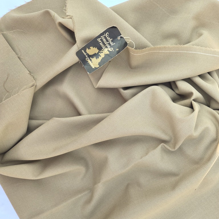 Scabal wollen crepestof vintage in een zeer stevige kwaliteit van 100% wol. De stof heeft de typische licht korrelige crêpestructuur en voelt tegelijk stevig en soepel aan.