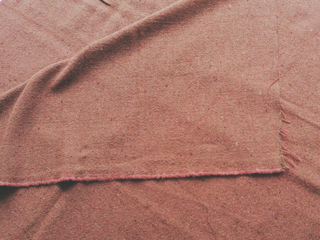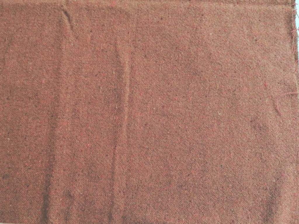 In platbinding met een bruine draad en een rode draad met kleine nopjes