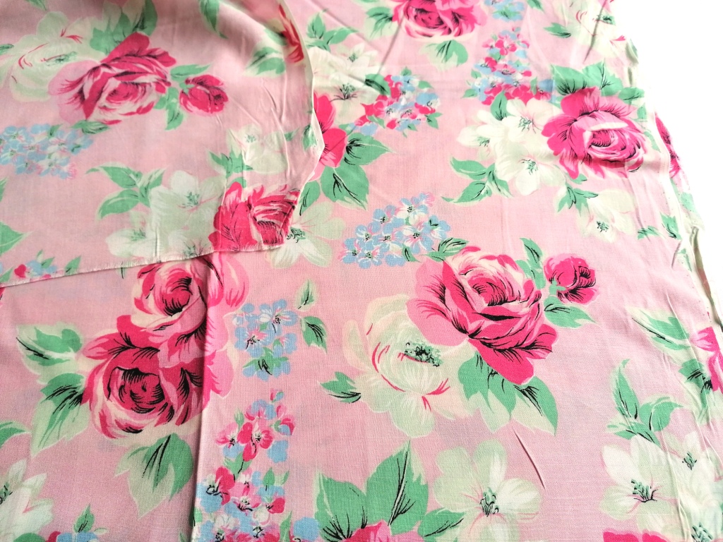 roze batist met bloemen in donkerroze, blauw en groen