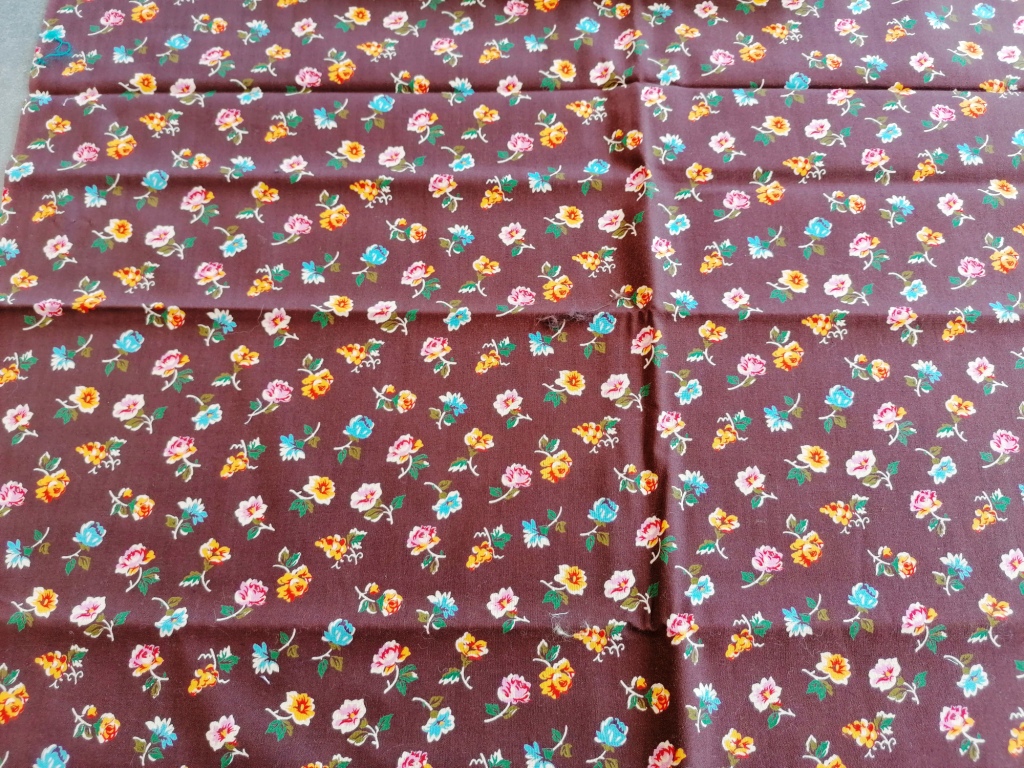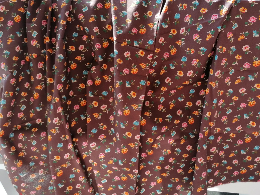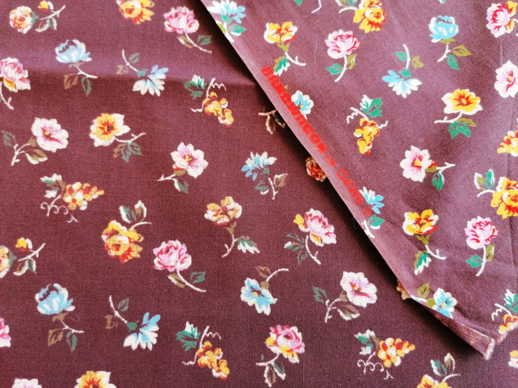 vintage bruine katoenen stof met fijne bloemetjes van “creation gewe”
