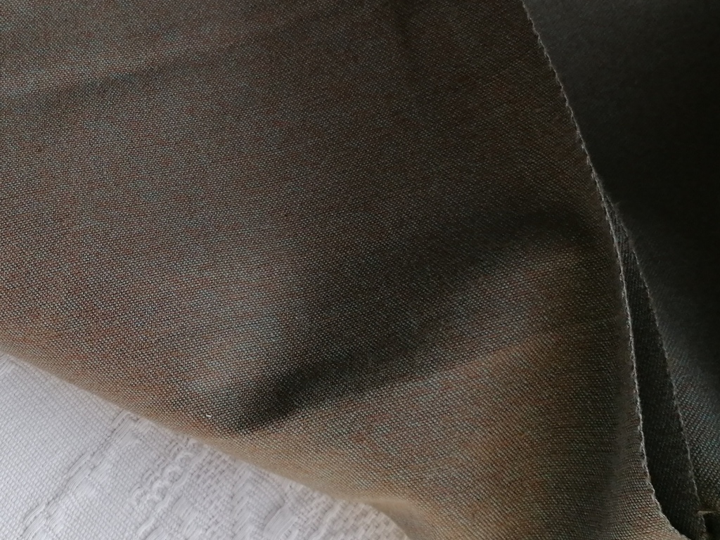 Deze vintage wollen stof heeft een vrij stevige en eerder stijve structuur, ideaal voor kledingstukken die vorm en body vragen. De gemêleerde combinatie van bruin, blauw en grijs geeft de stof een tijdloze, klassieke uitstraling. Een mooie keuze voor blazers en rokken met karakter.
