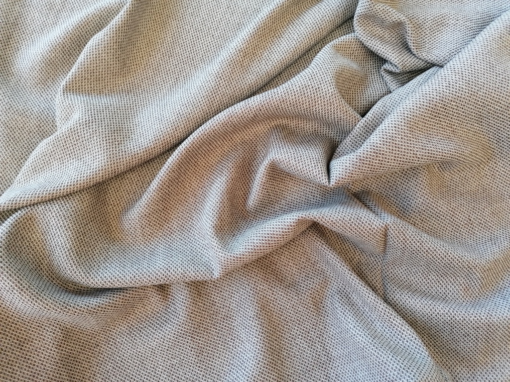 Geweven met lichte en donkere draden, waardoor een subtiel gespikkeld effect ontstaat