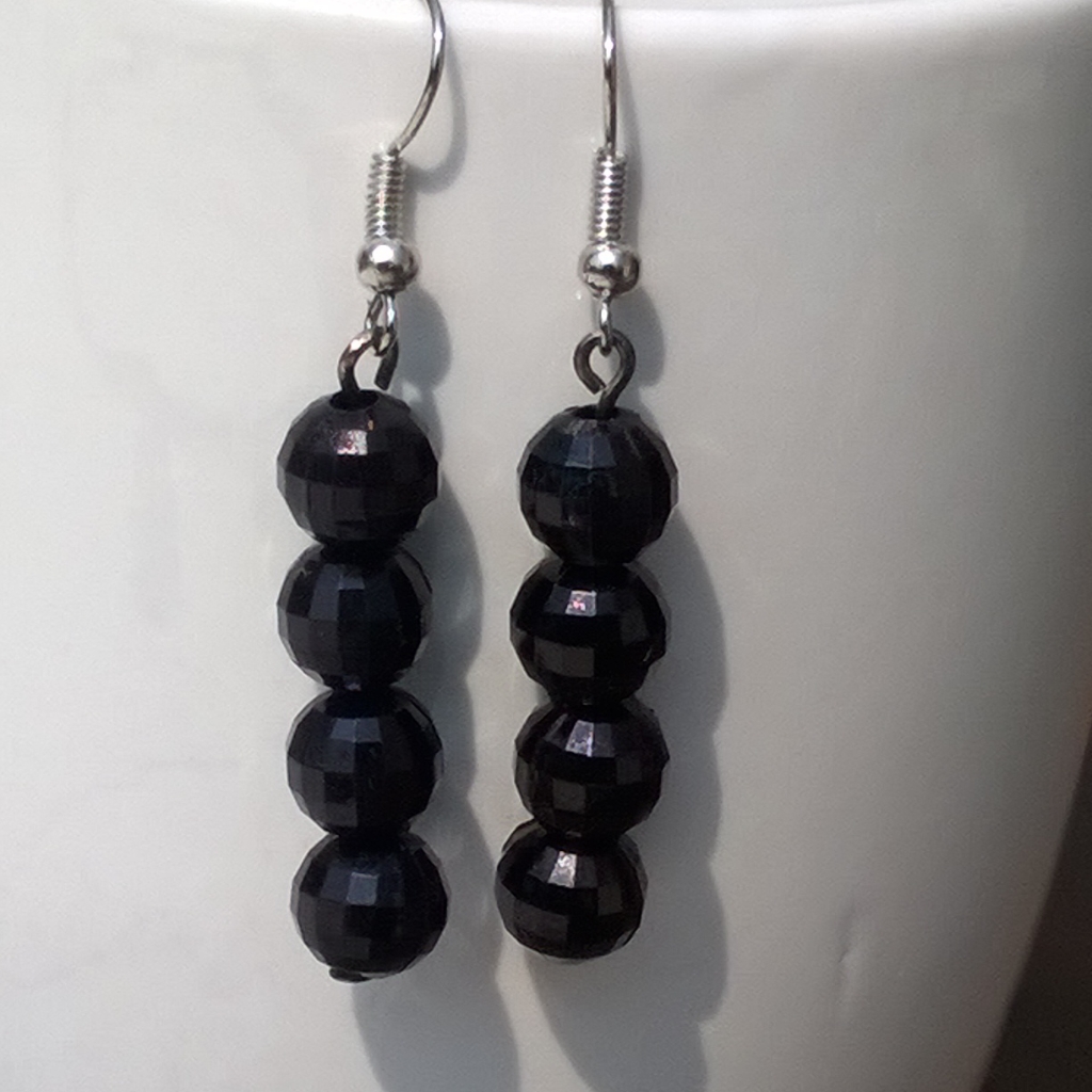 kralenketting van zwarte kunststof facetkralen van groot naar klein (52cm) –