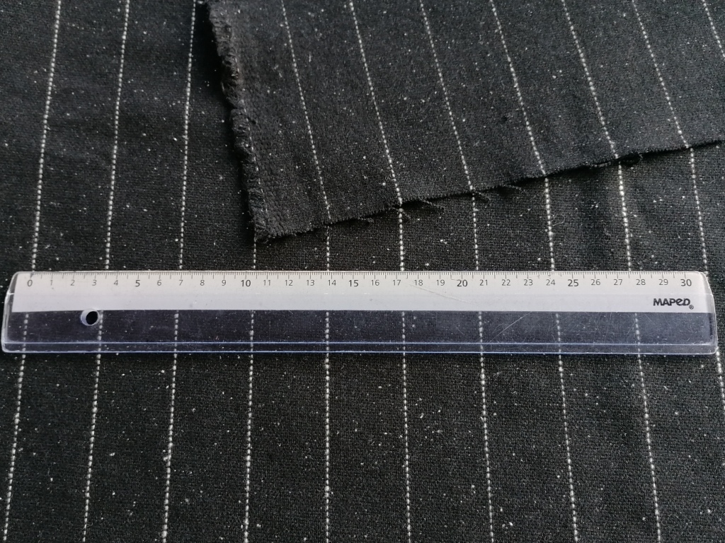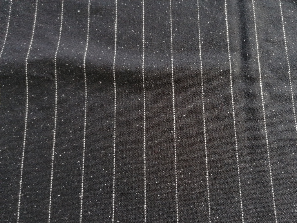 zwarte wollen stof met witte krijtstreep en stippeltjes
